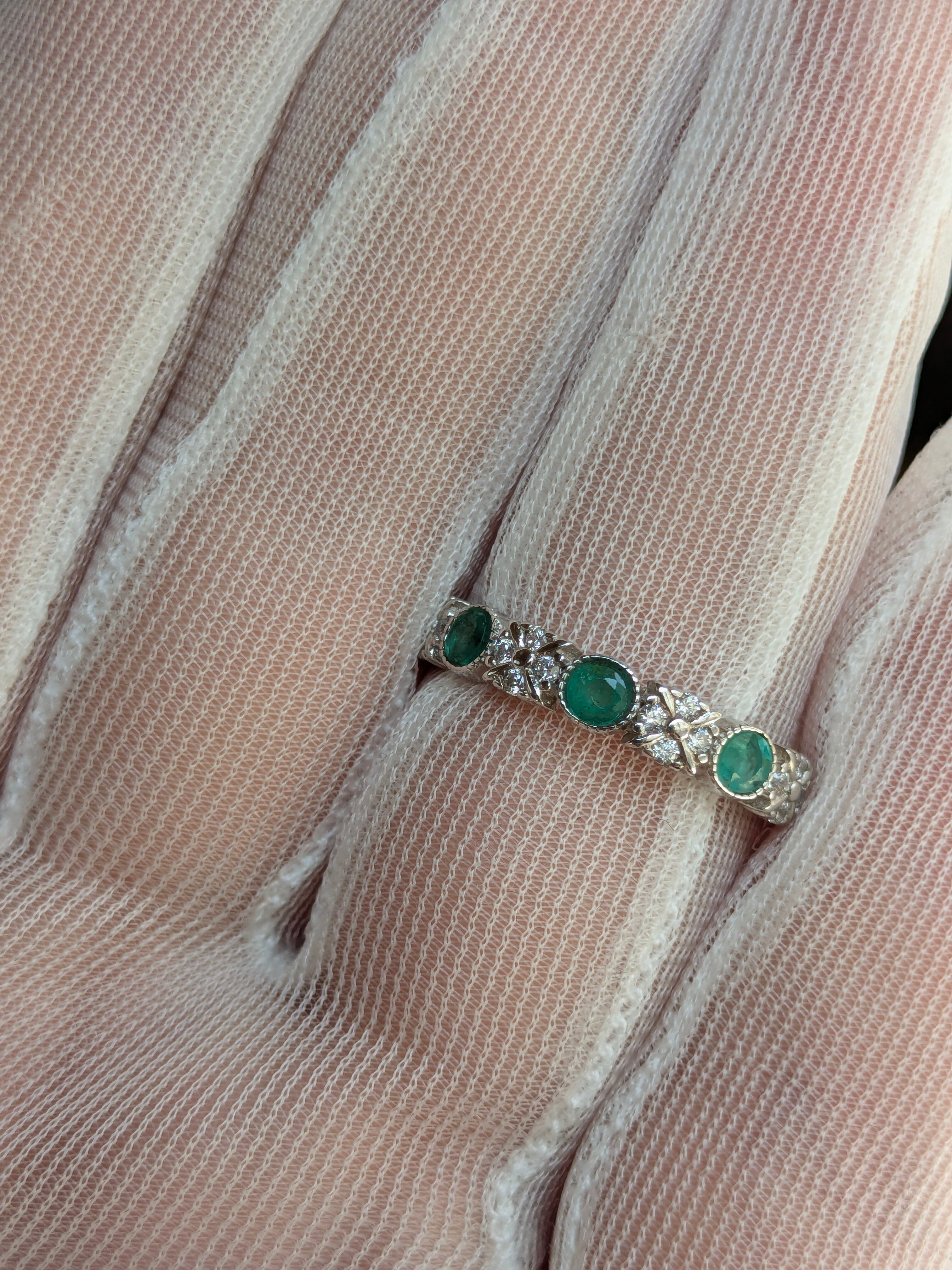 素敵なデザインです♡後ろ側はシンプルなリングになっております。エメラルドは透明感はそこまで無いもののお色がとても濃いめで可愛いです( ꈍᴗꈍ)