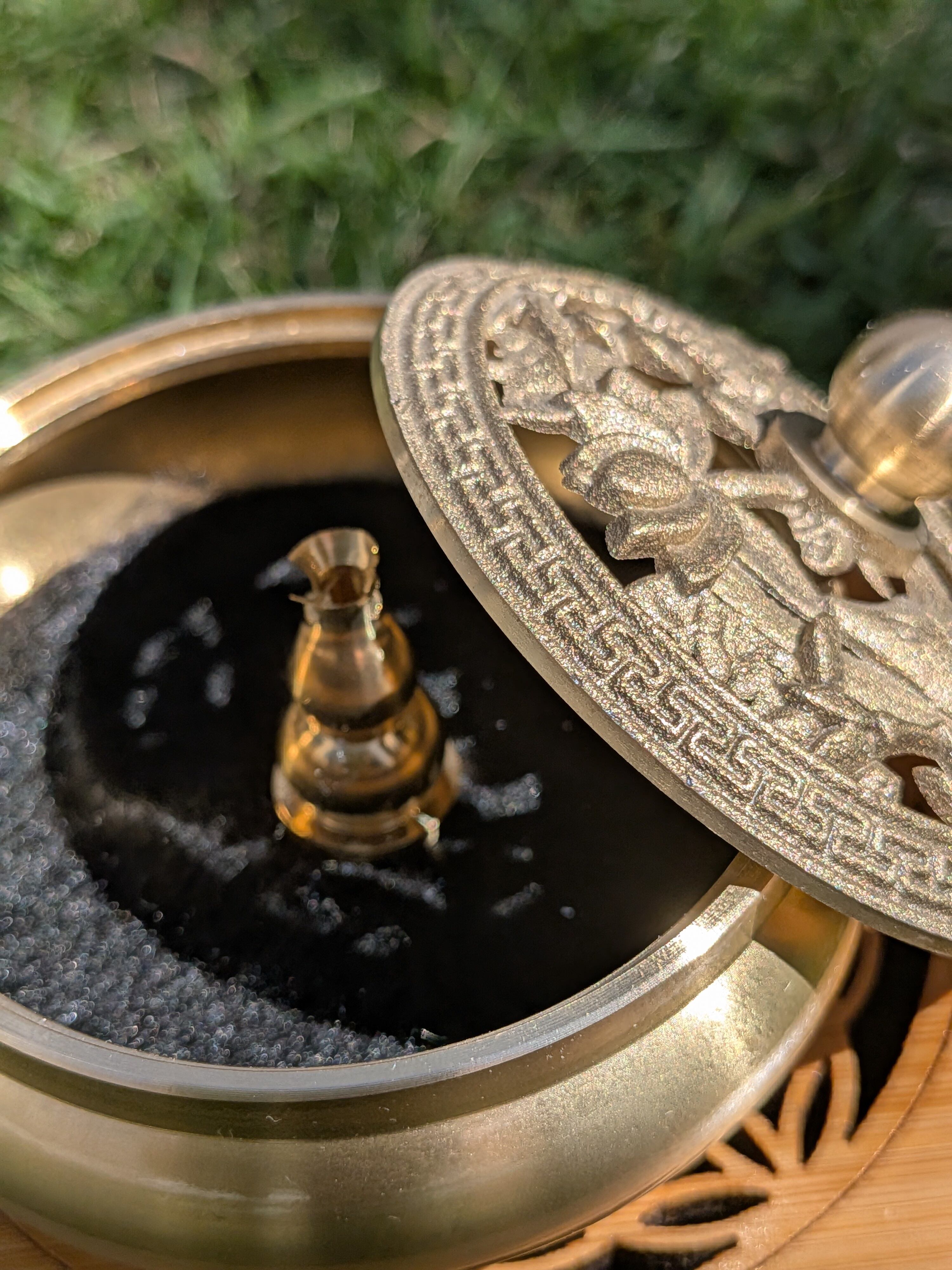 中の黒いシートはそのまま香炉の敷きマットとしてお使いいただけます。お香立て付き。