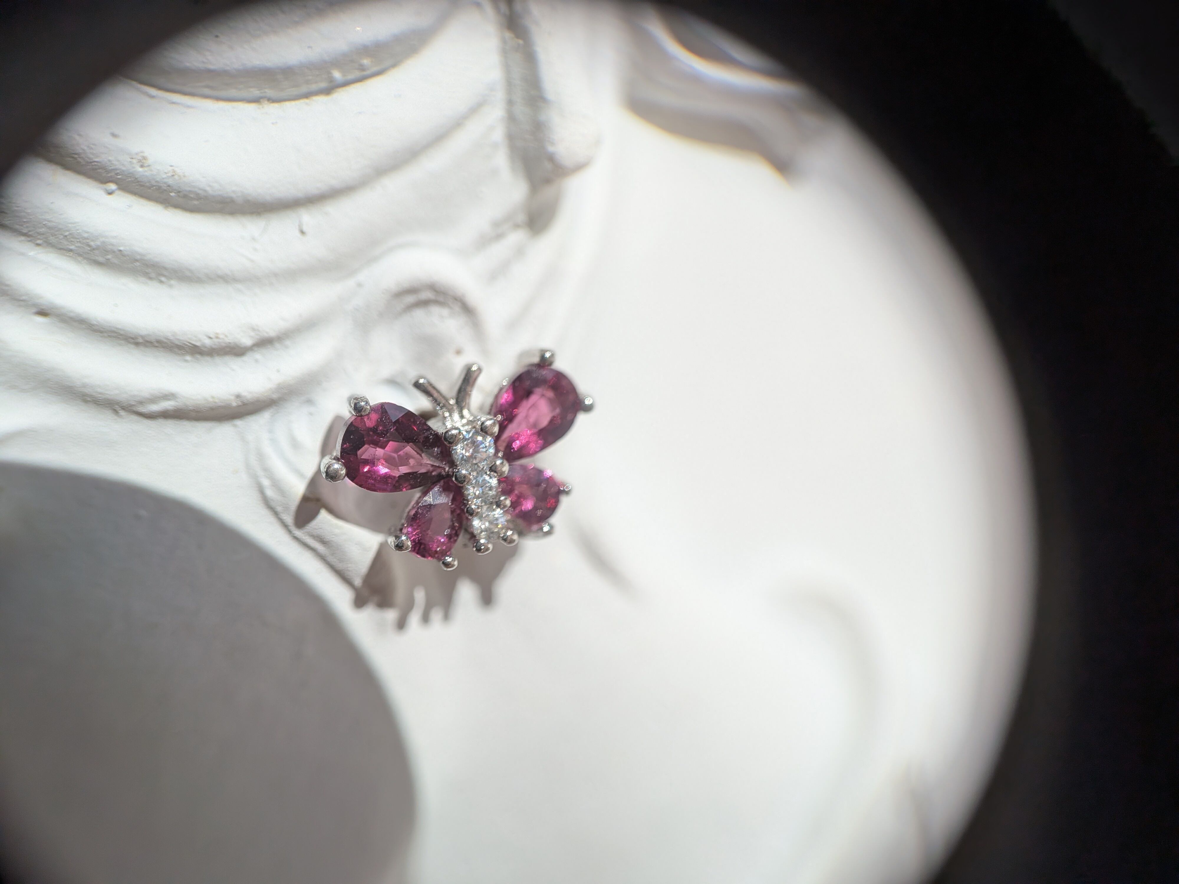 最大の特徴は、美しいワインレッドの紫色を帯びた煌めきです。褐色に近い赤色が特徴的なパイロープガーネットと濃い赤のアルマンディンガーネットの双方の中間に位置しています。二つの成分がどのような比率で入っているのかによって色合いも異なっていくため、1つとして同じものがないのも魅力の1つです(*^^*)