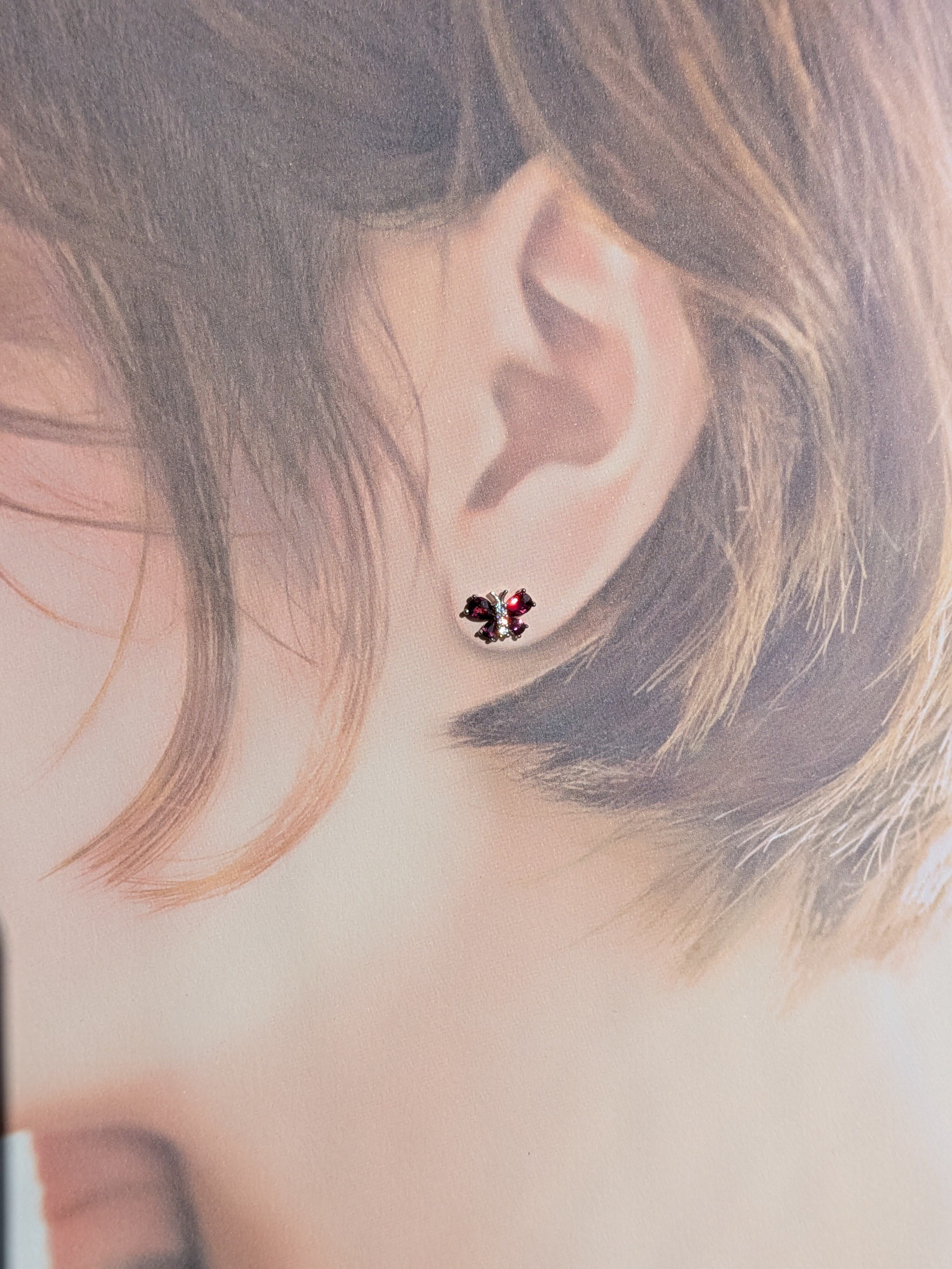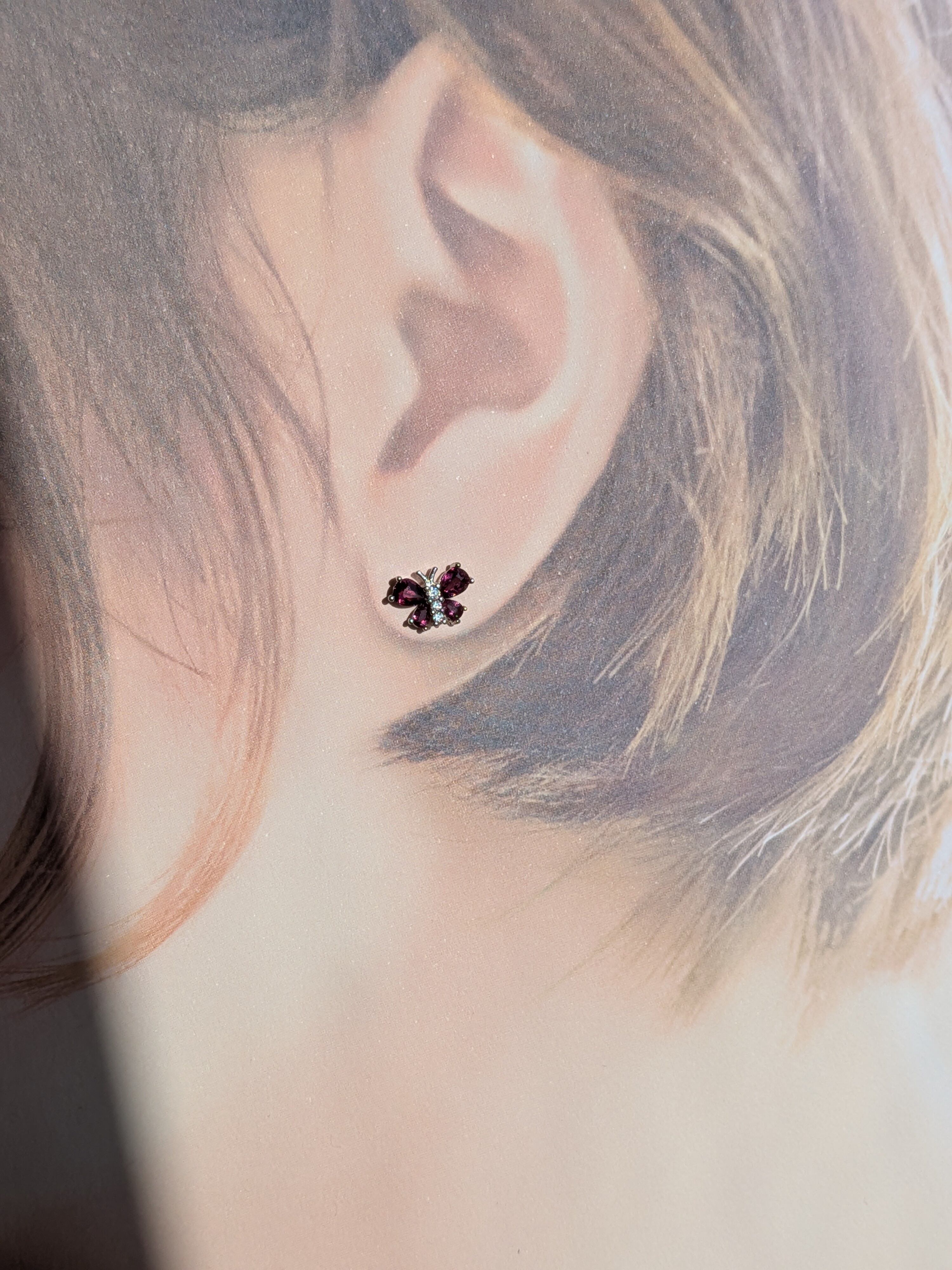 天然石*ロードライトガーネット*蝶々デザイン*S925ピアス