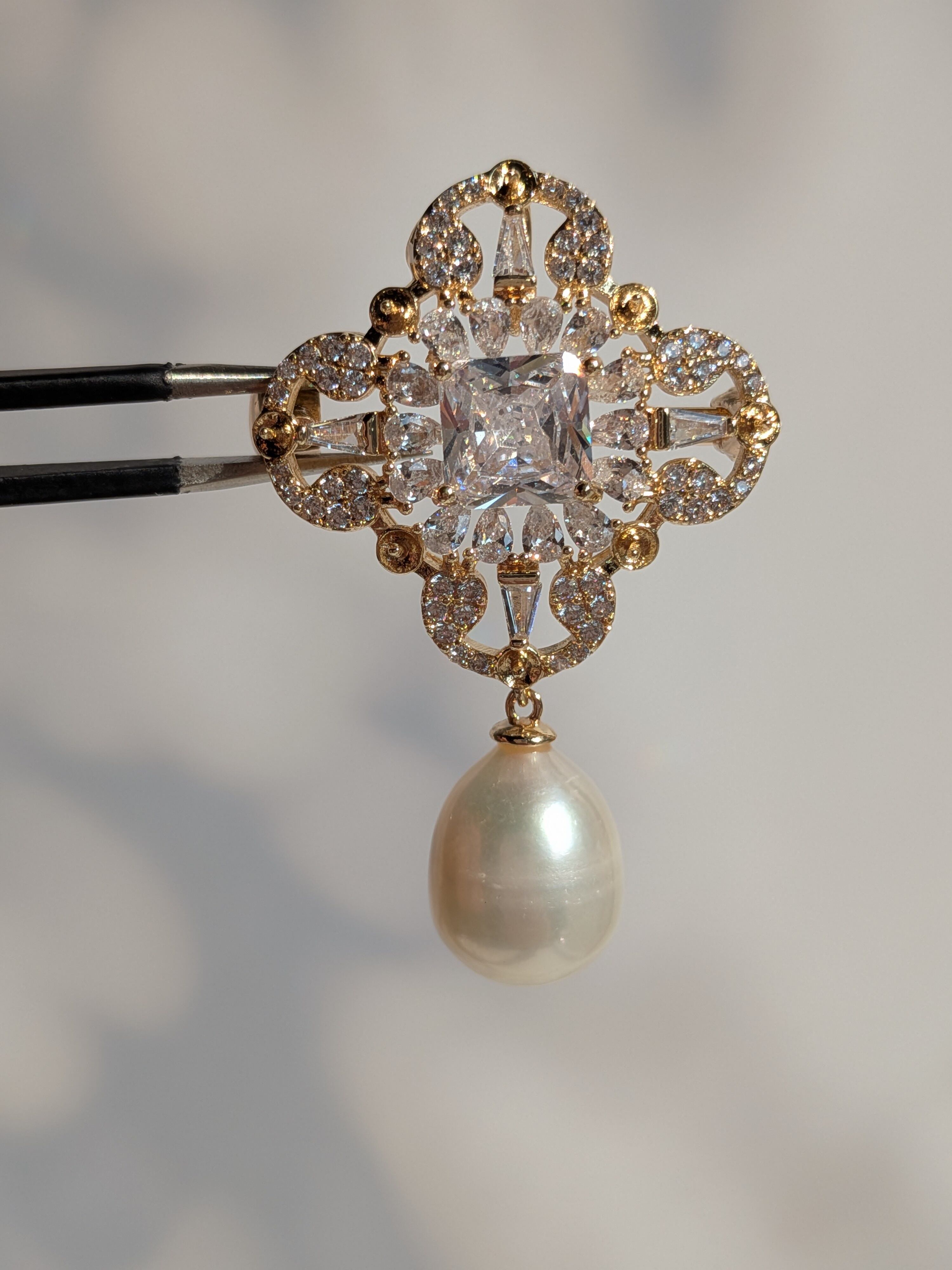 ブラス製*ブローチ*淡水パール