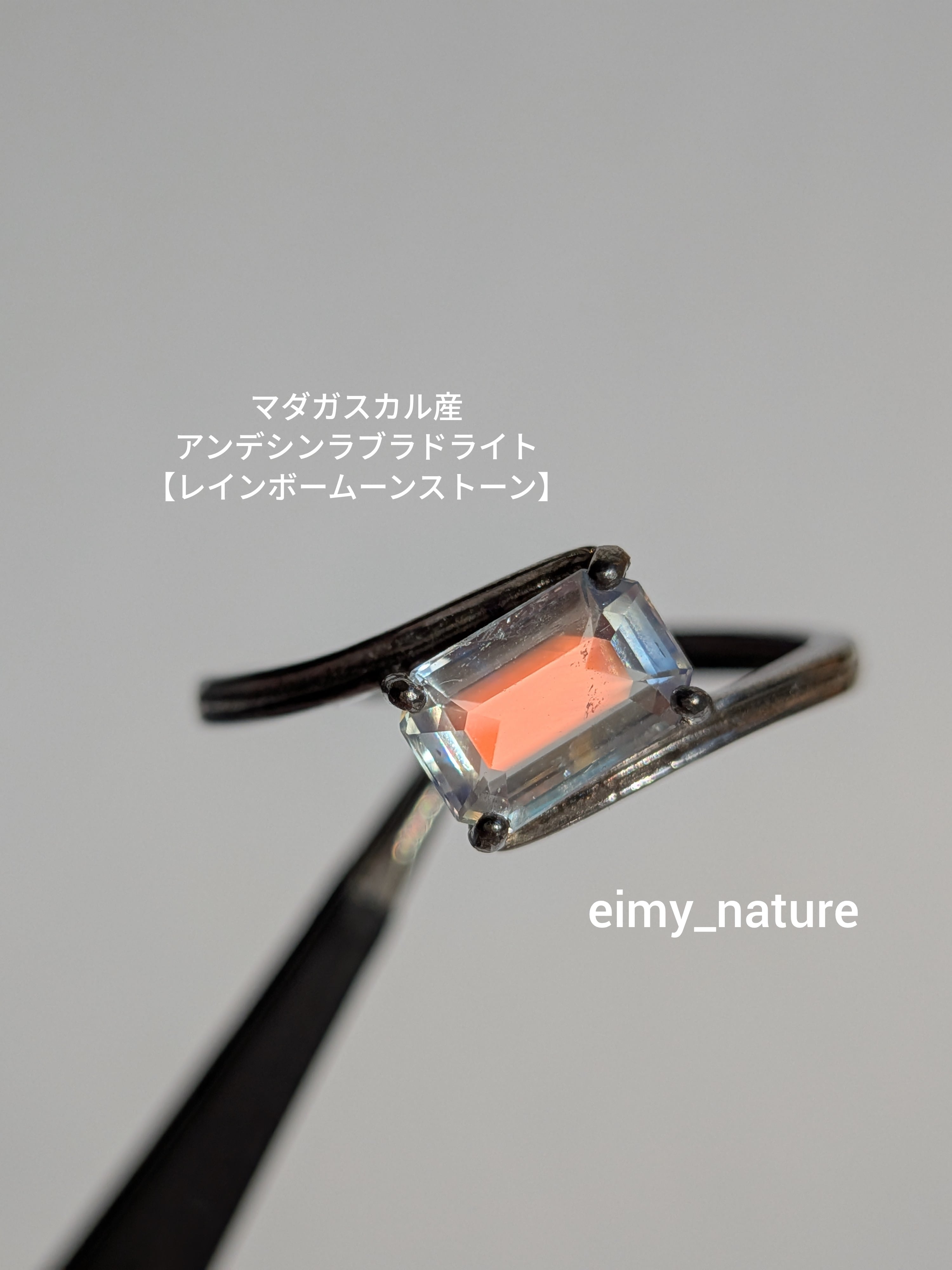 とにかく美しいです!!お石は透明なのに虹色を纏ったようなオーラのような…正面はアンデシンラブラドライトの特徴でもあるオレンジのシラーがバッチリ出ます♡お写真では伝えるのが難しいお石なのですが本当に美しいです(*^^*)色んな角度から必ず見てほしいです♫