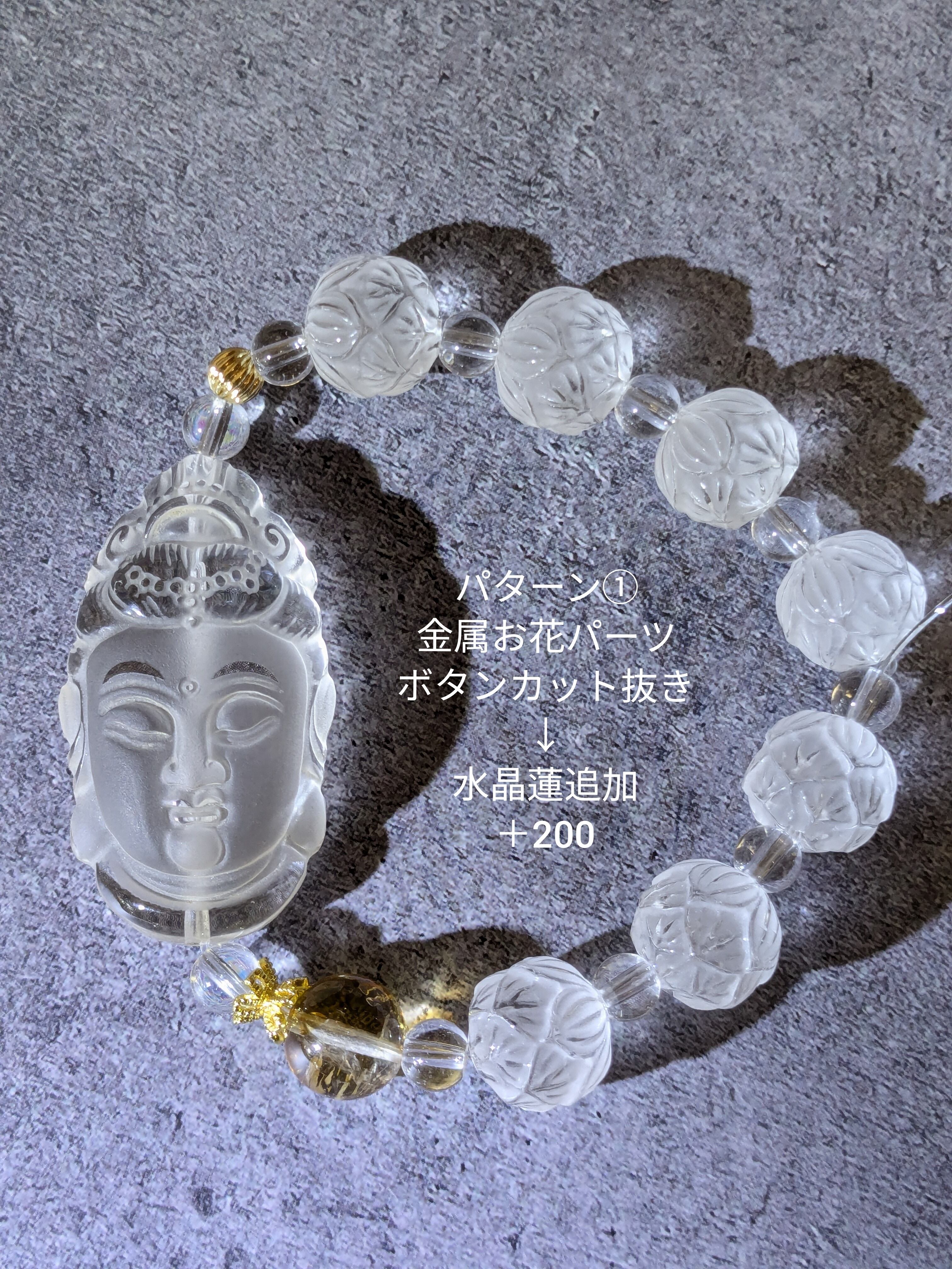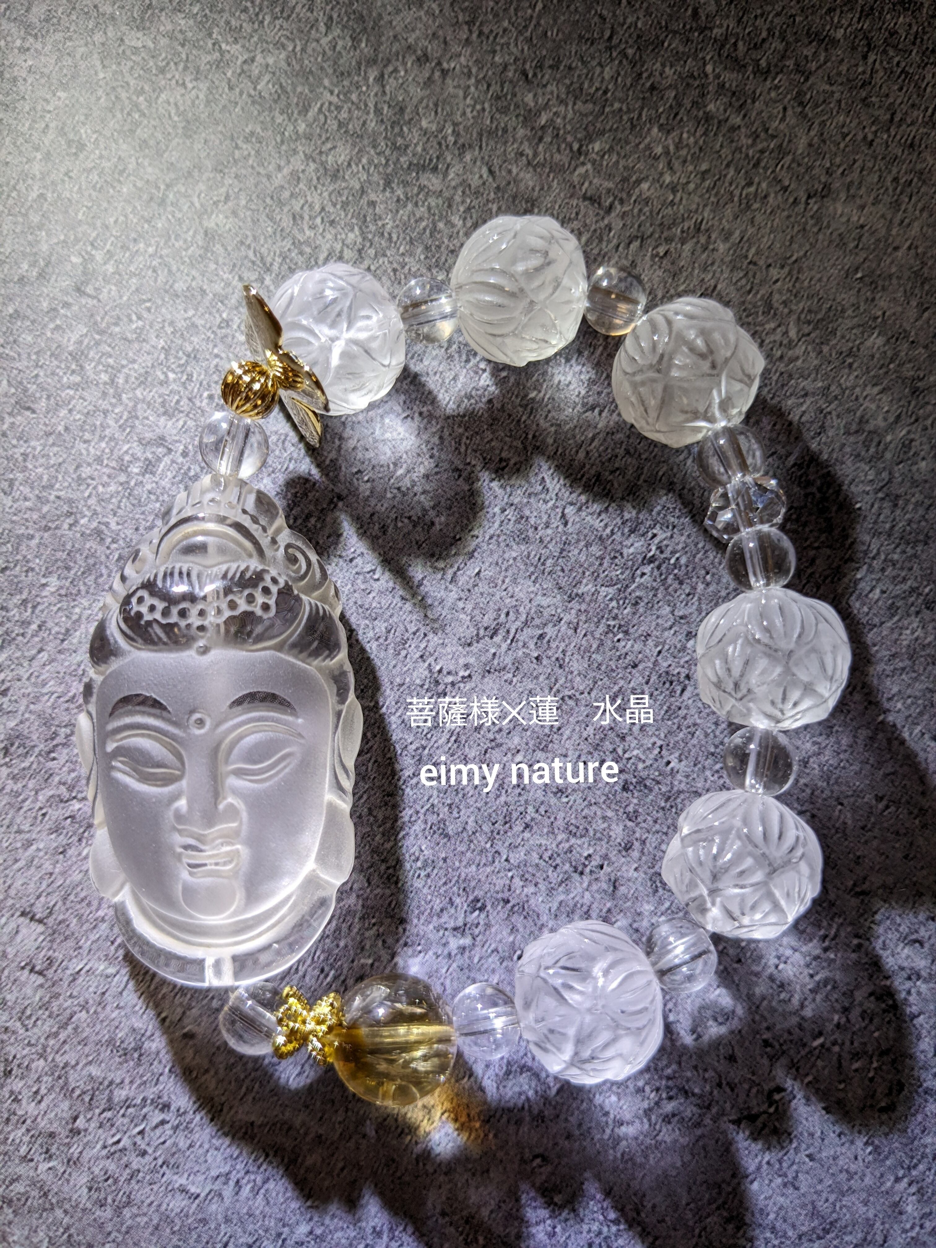 観音菩薩様と蓮華の水晶ブレスレット