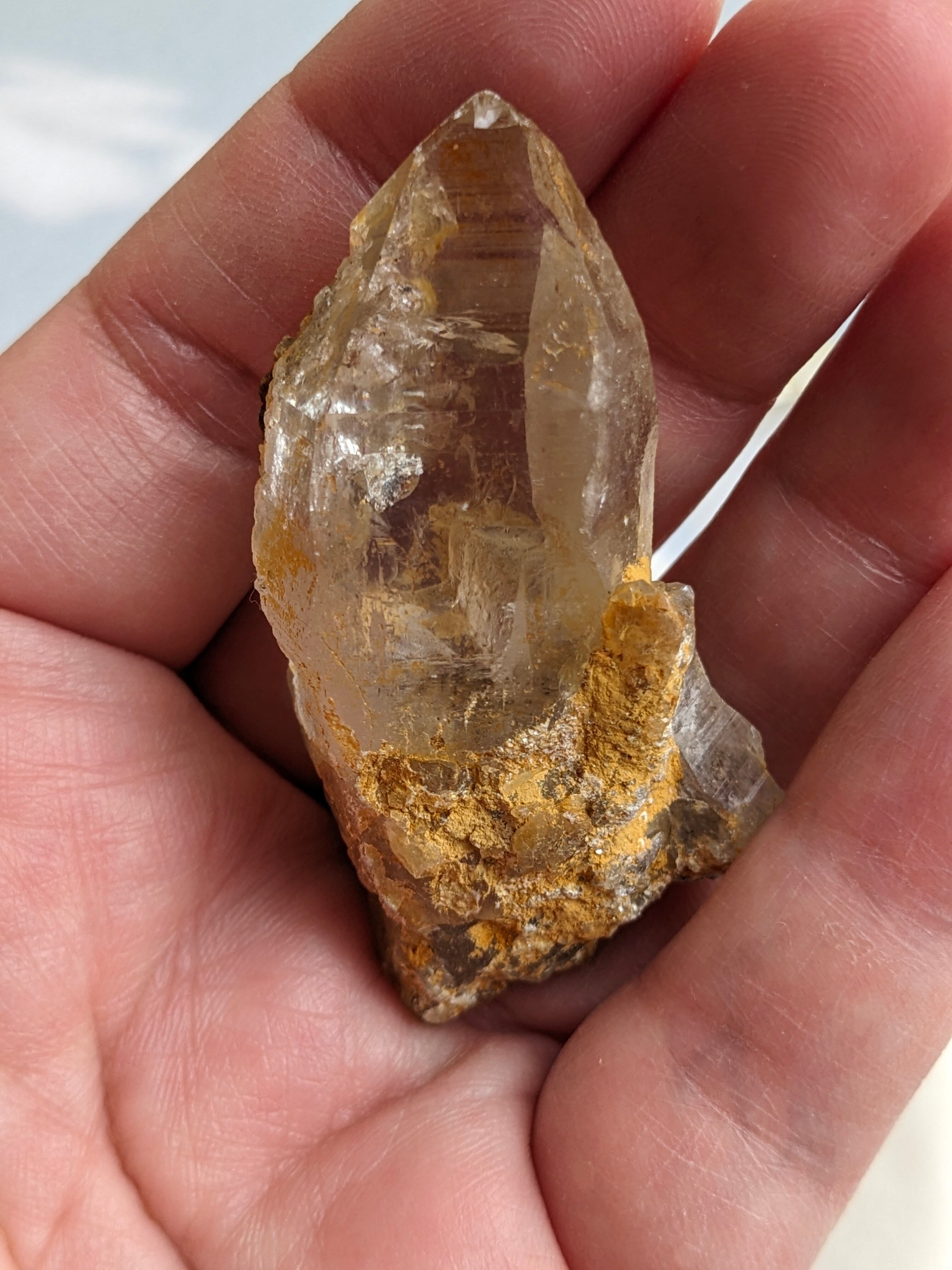 特徴的なリモナイト(酸化鉄)やゴールデンヒーラー、成長線がとても素敵なお石さんです。