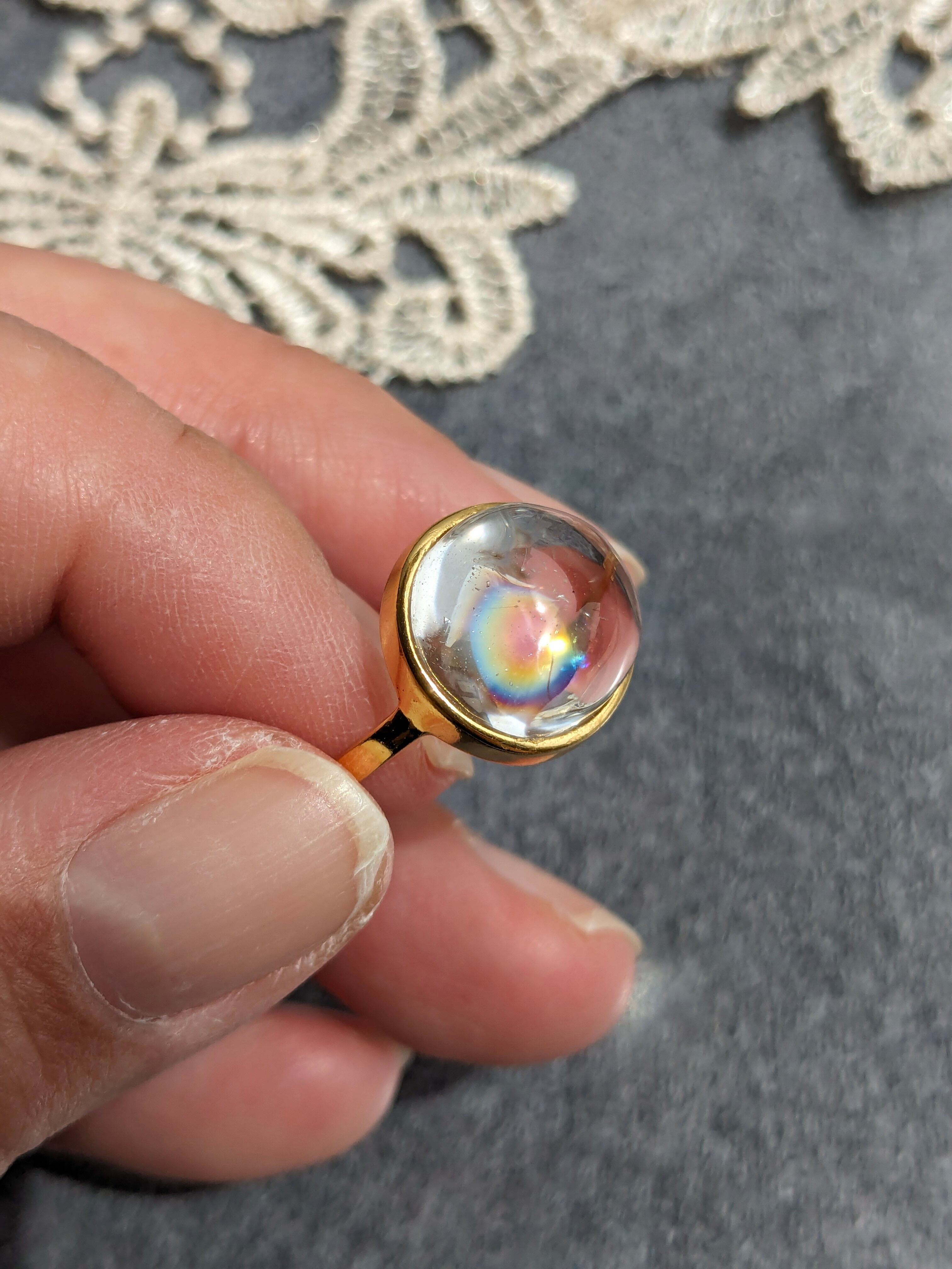 天然に水晶内に形成された虹(アイリス)入の水晶。膜のように薄いクラックの虹は完全なる天然の証です。