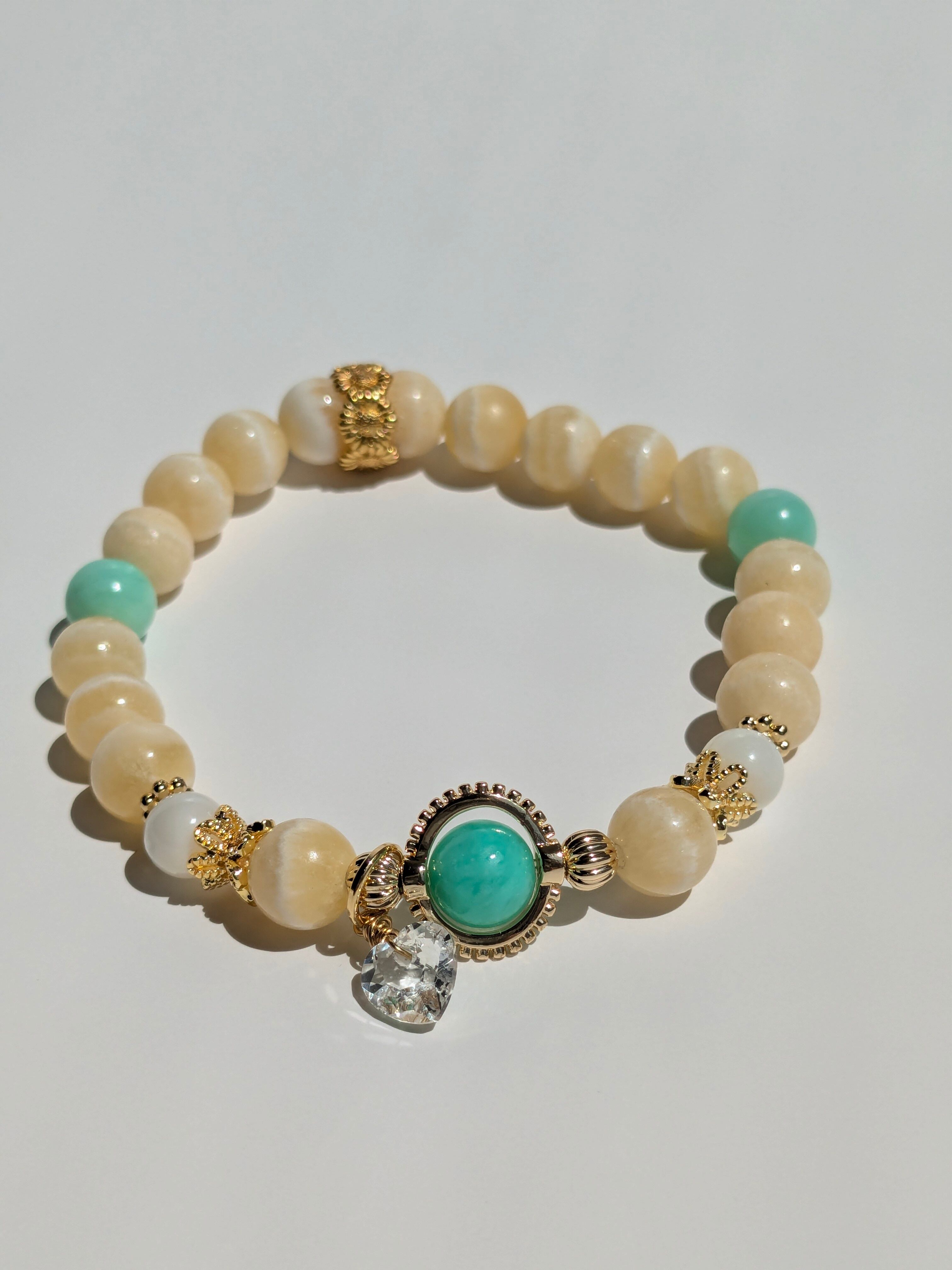 天然石*オレンジカルサイト*クリソプレーズ*マザーオブパール*水晶*ブレスレット