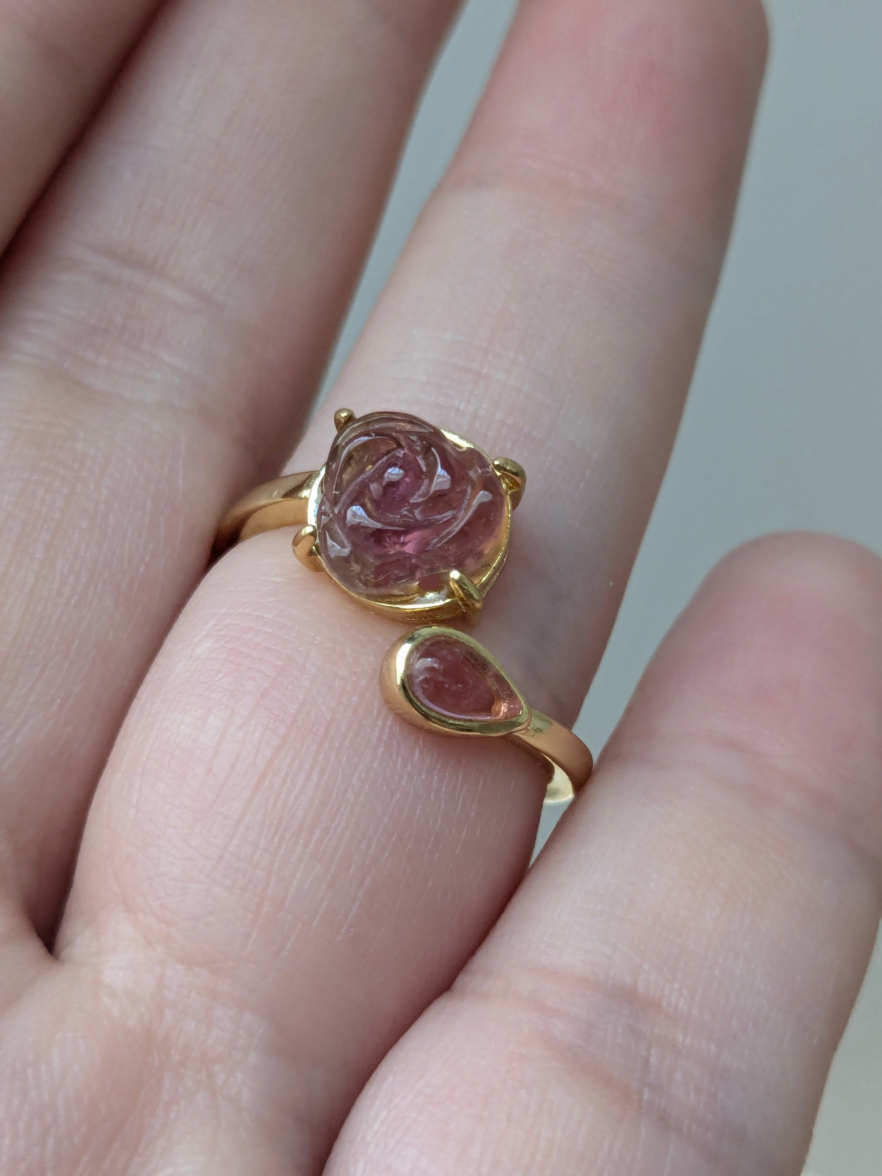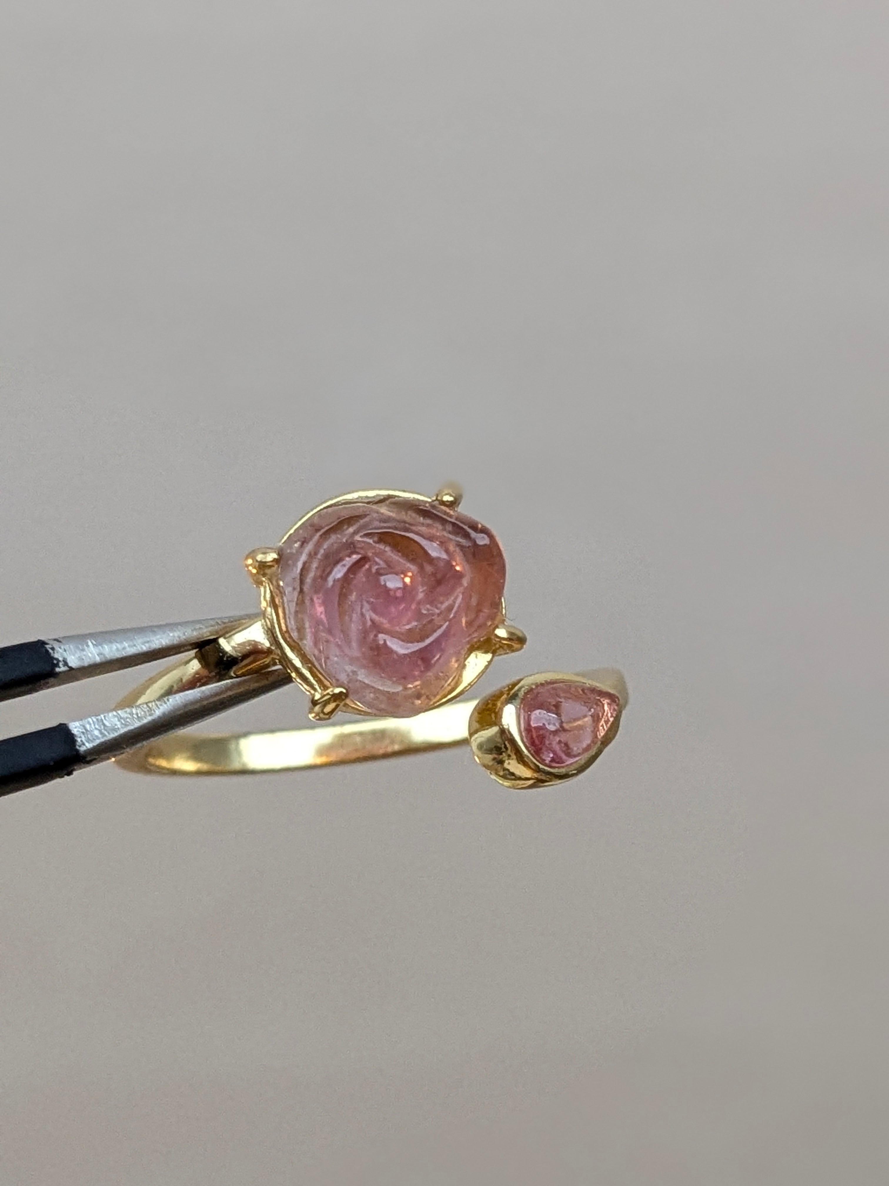 天然石*トルマリンSilver925のリング*薔薇彫刻