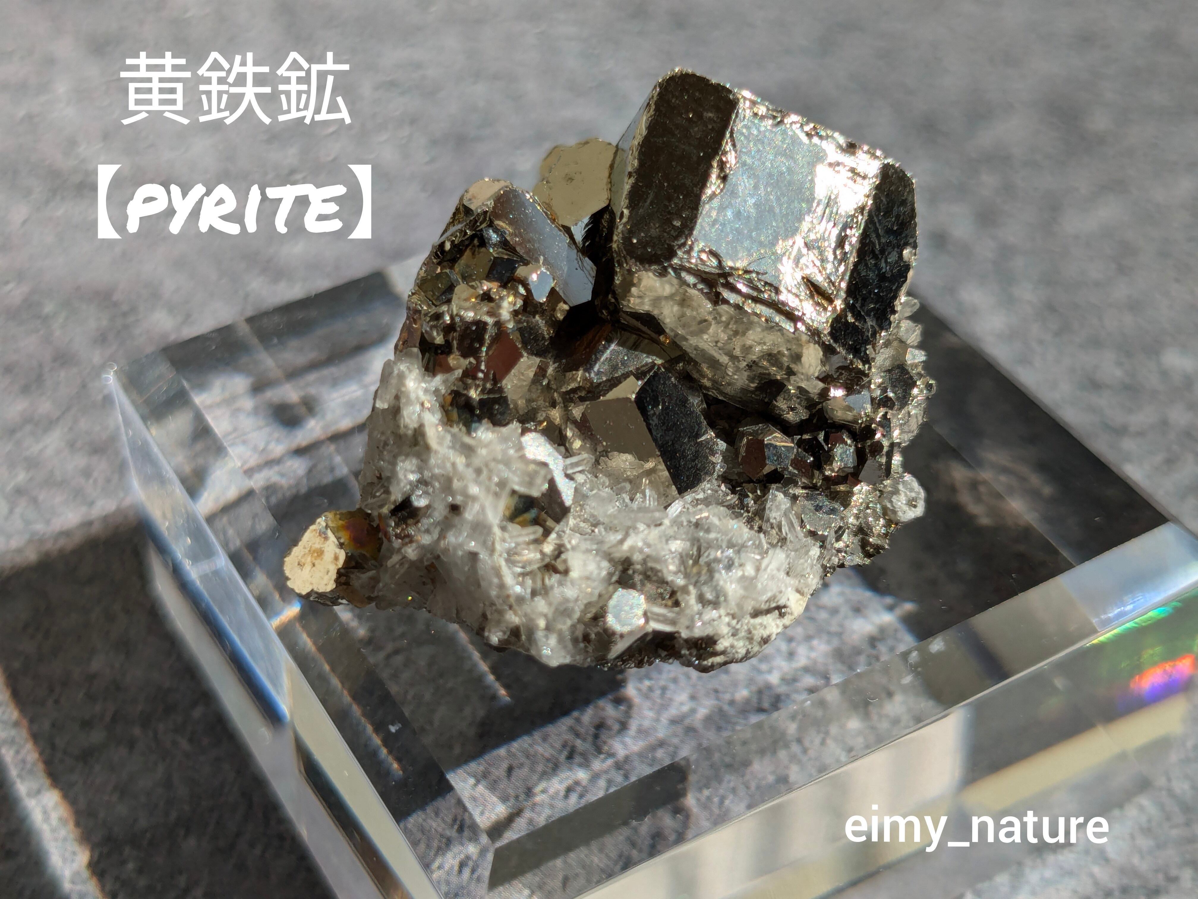 天然石*黄鉄鉱*パイライト*水晶共生*原石*台座付き